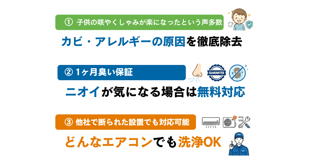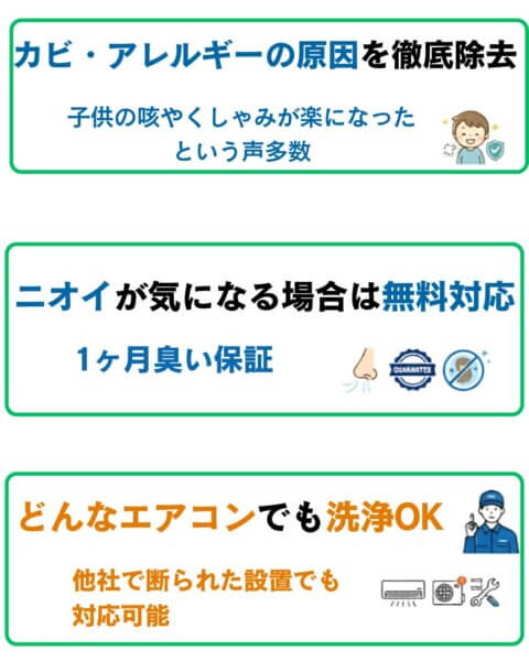 私たちは、安心してご利用いただく為に、エアコンがキレイになっていない、エアコンが気になる、等、対応に満足出来なかったなどのご意見がございましたら、サービス再施工または、預かった代金を返金させていただきます。