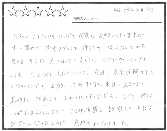 「他社のエアコンクリーニングを何度もお願いしていますが