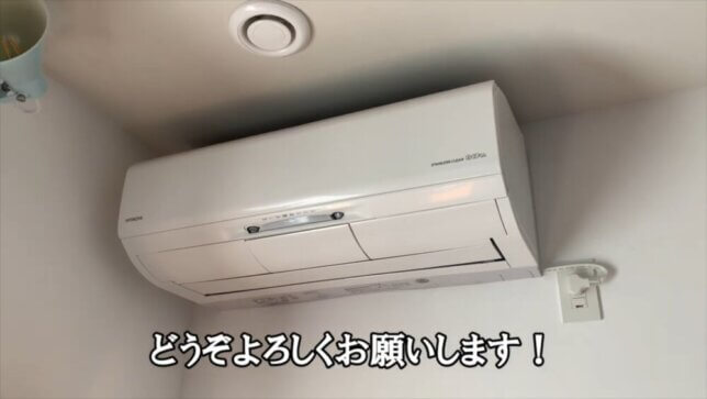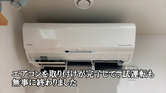 エアコンを壁に取り付けて、真空引きなどの作業が終わり試運転している様子です!