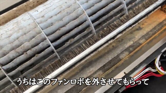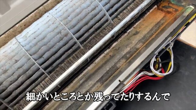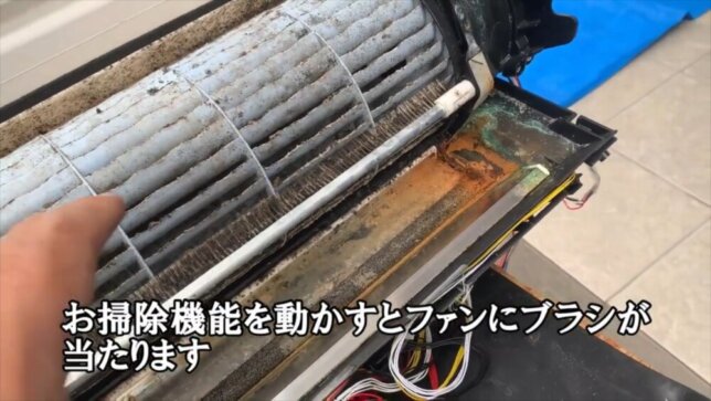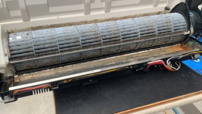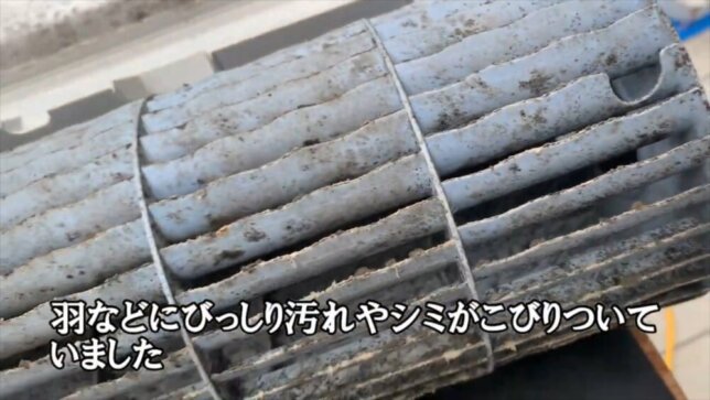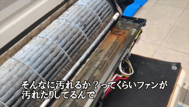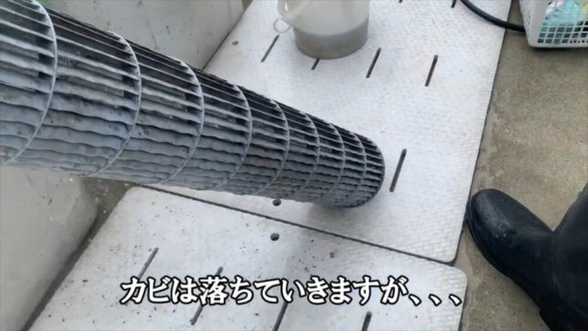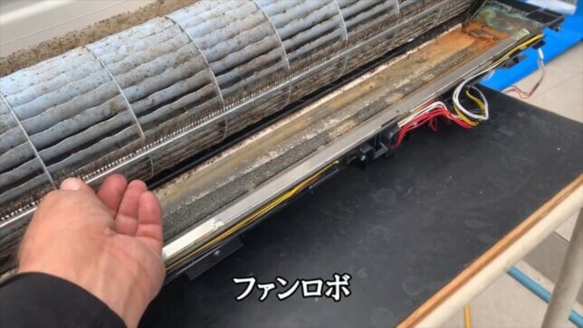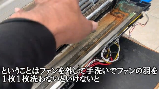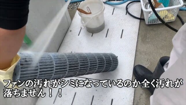 ファンをエアコンから取り外し、ファンの羽を一枚一枚手洗いで洗浄しない限り汚れが落ちないので