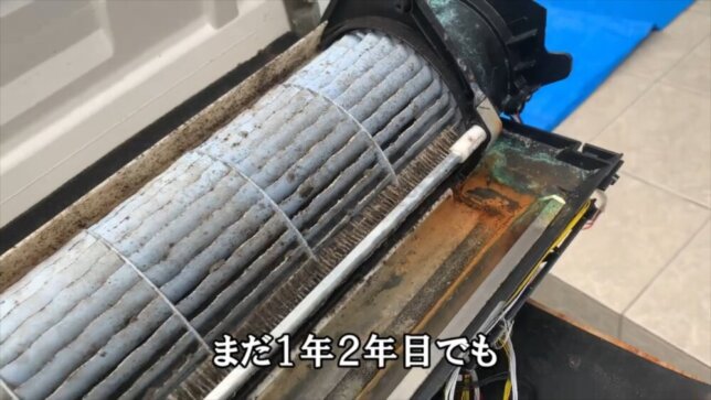 さらに酷いケースだと、この凍結洗浄エアコンは1,2年でファンにカビが生えてるケースもあるのです、、、
