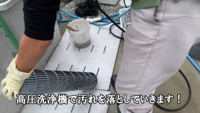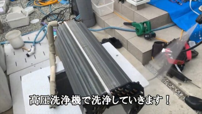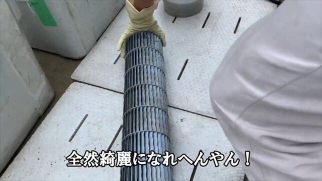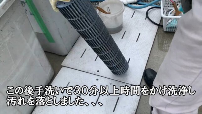 動画では映ってないですが、この後噴霧器で洗浄液をかけてさらに汚れを落とし洗浄しました
