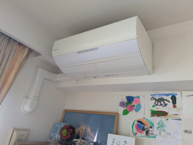 お客様のお宅にあるのは、パナソニック製の最上級モデルのお掃除機能付きエアコン。 実はこれの前は、ダイキン製のノーマルエアコンを使われていたそうです。