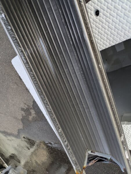 熱交換器の裏エアコンクリーニングしたらこの部分が汚れてる