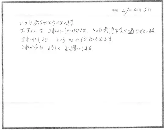 エアコンをきれいにしていただきとても気持ちよく過ごせています。