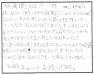 お客様の声109:ファンの汚れに感動!快適な夏が迎えられそうです