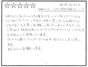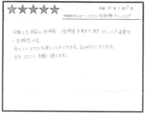 松原市で選ばれる完全分解クリーニング|丁寧な仕事と安心のアフターフォロー|お客様の声168